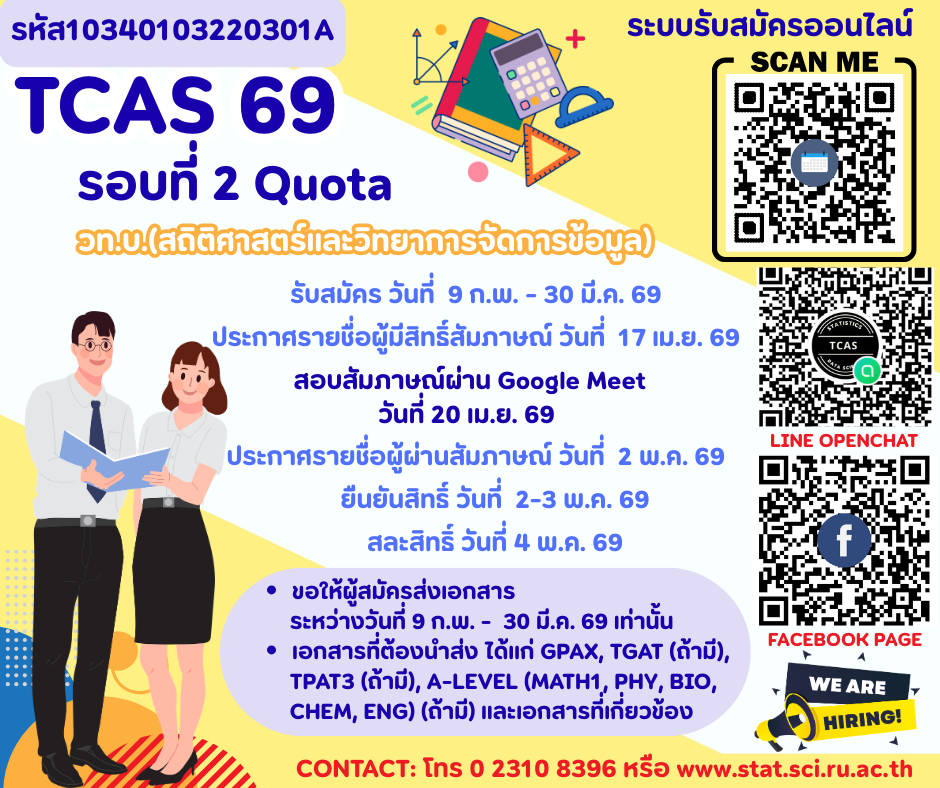 ภาควิชาสถิติ คณะวิทยาศาสตร์ มหาวิทยาลัยรามคำแหง แขวงหัวหมาก เขตบางกะปิ กรุงเทพมหานคร 10240